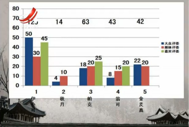 The judges used Enjoy® Wireless Voting System to vote, just click the contestant’number and “OK†to send message. The voting result was showing as graph on the screen, everybody can see the result immediately.